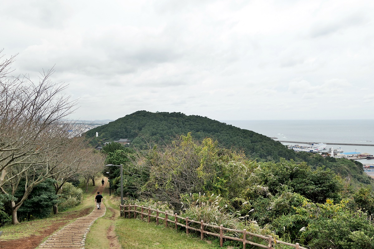 오른쪽은 사라봉으로 아래에 산지등대가 보이네요.