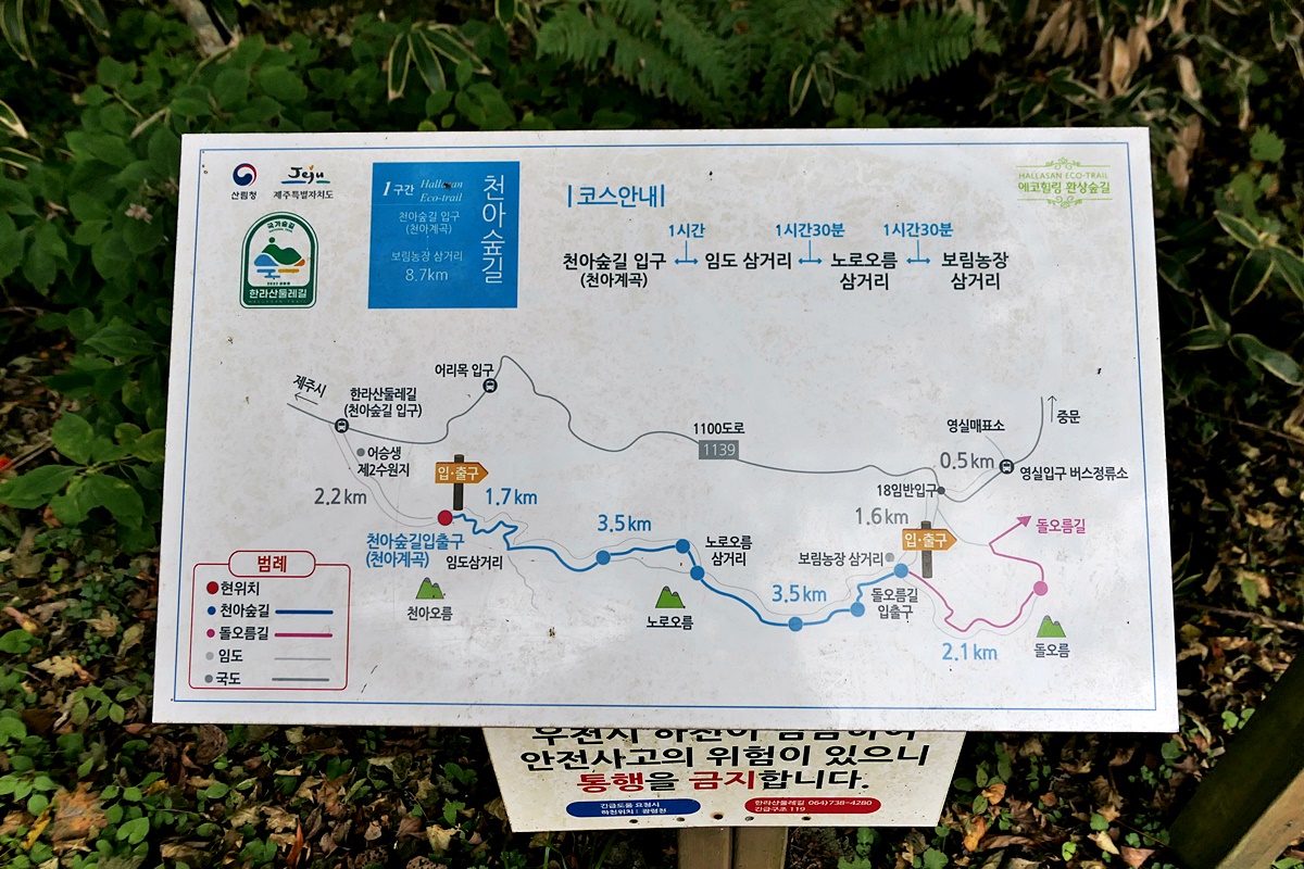천아숲길을 걸으면 돌오름 B코스에 연결되어 1100도로로 갈수 있는데 아쉬움이 크네요.