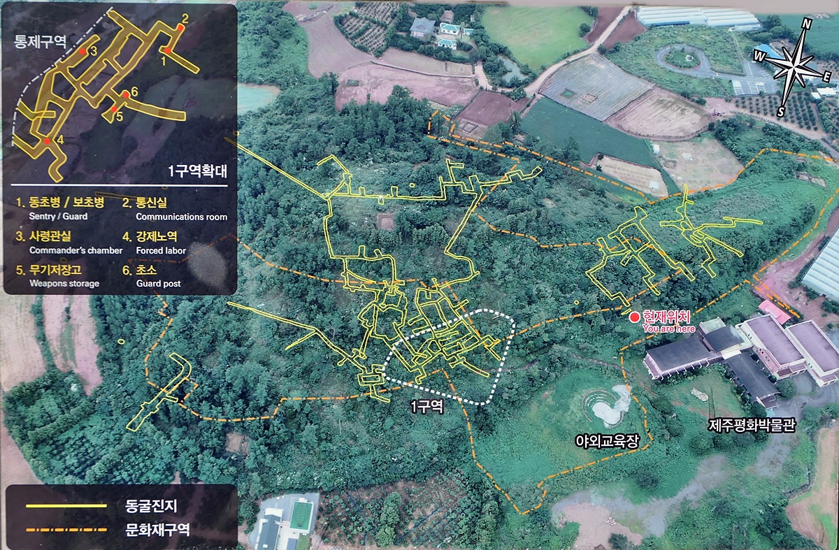 일본군은 약 7만5천여명의 대규모 병력을 제주에 배치하고 제주도민을 강제동원하여 한라산 고지대, 해안가, 오름 등에 각종 군사시설을 구축하였지요.