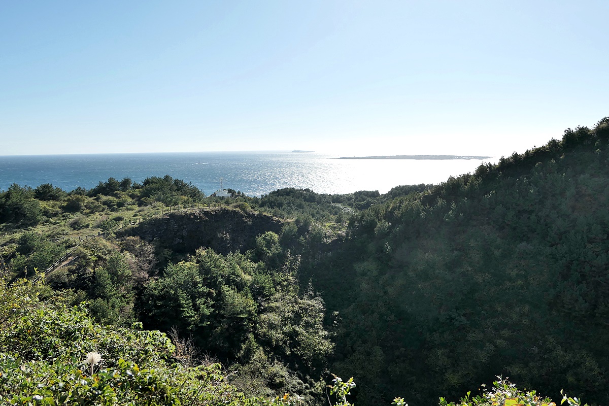 2코스로 하산하다가 바라본 제주의 푸른 바다.