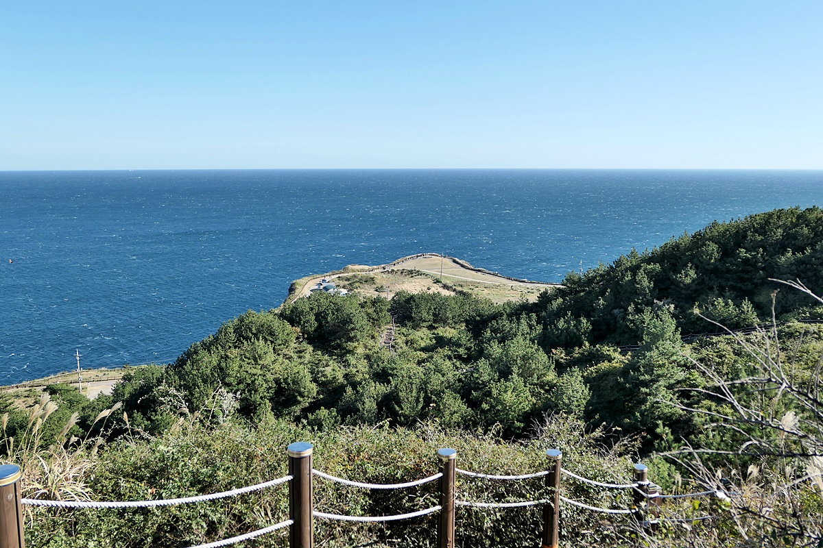 전망대가 나타나며 송악산 분화구가 보입니다.
