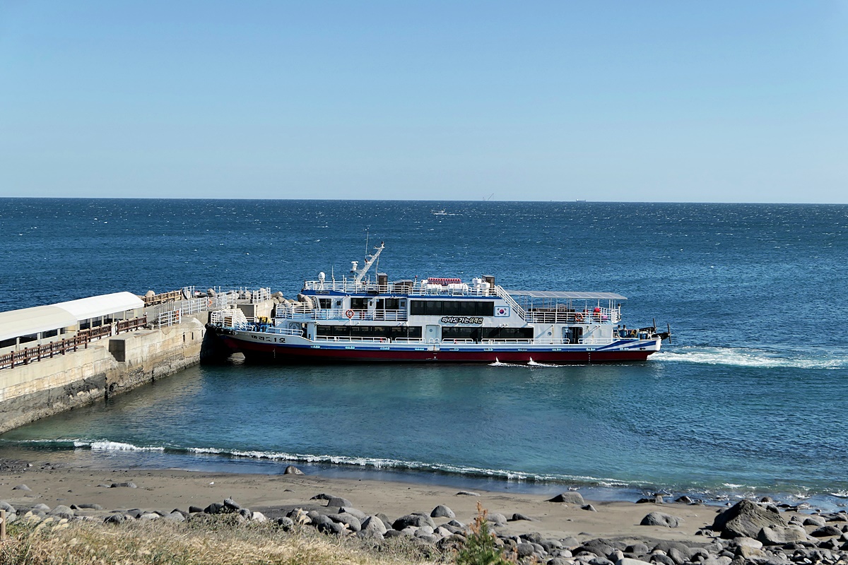 사계리 산이수동항에서 마라도행 여객선이 막 출발하려고 하네요.