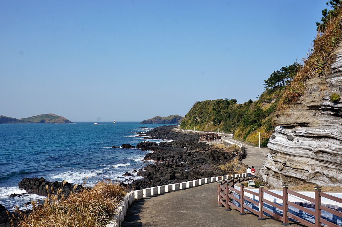 푸른 바다를 벗삼아 탄낭구조의 물결치는듯한 화산체 지층도 보고 태평양 전쟁 당시의 갱도진지, 녹고물 샘 등을 둘러보는 탐방길이 너무나 뜻깊고 좋았습니다.