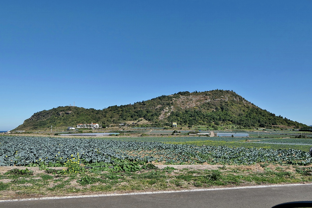 차를 타고 수월봉으로 가면서 바라본 당산봉.