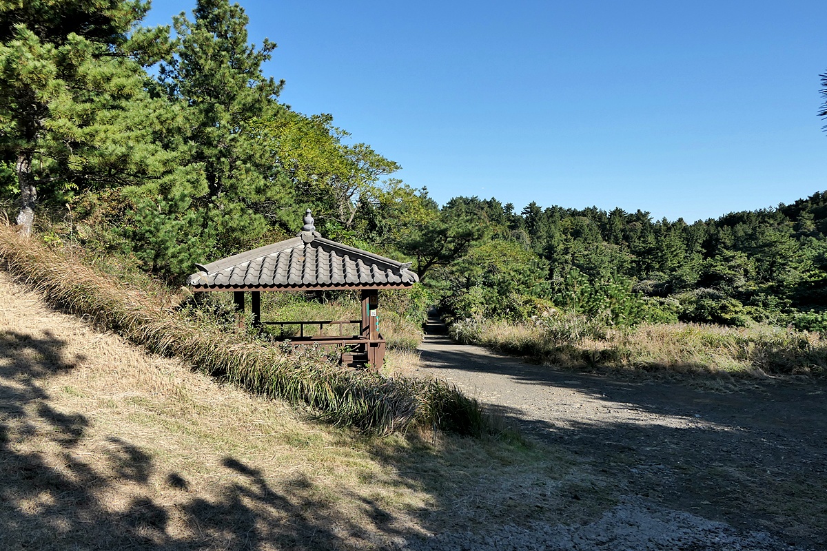정자에서 바라보니 분화구처럼 생긴 지형이 보이는데요.