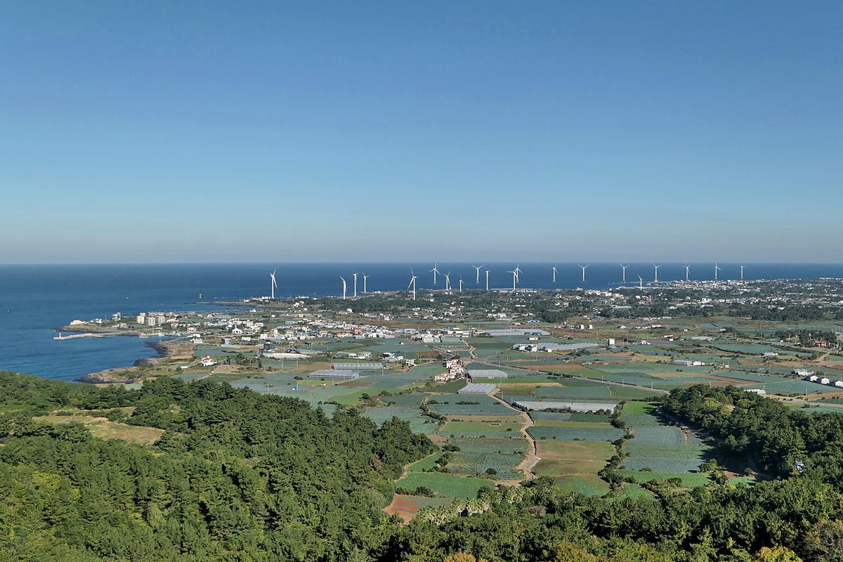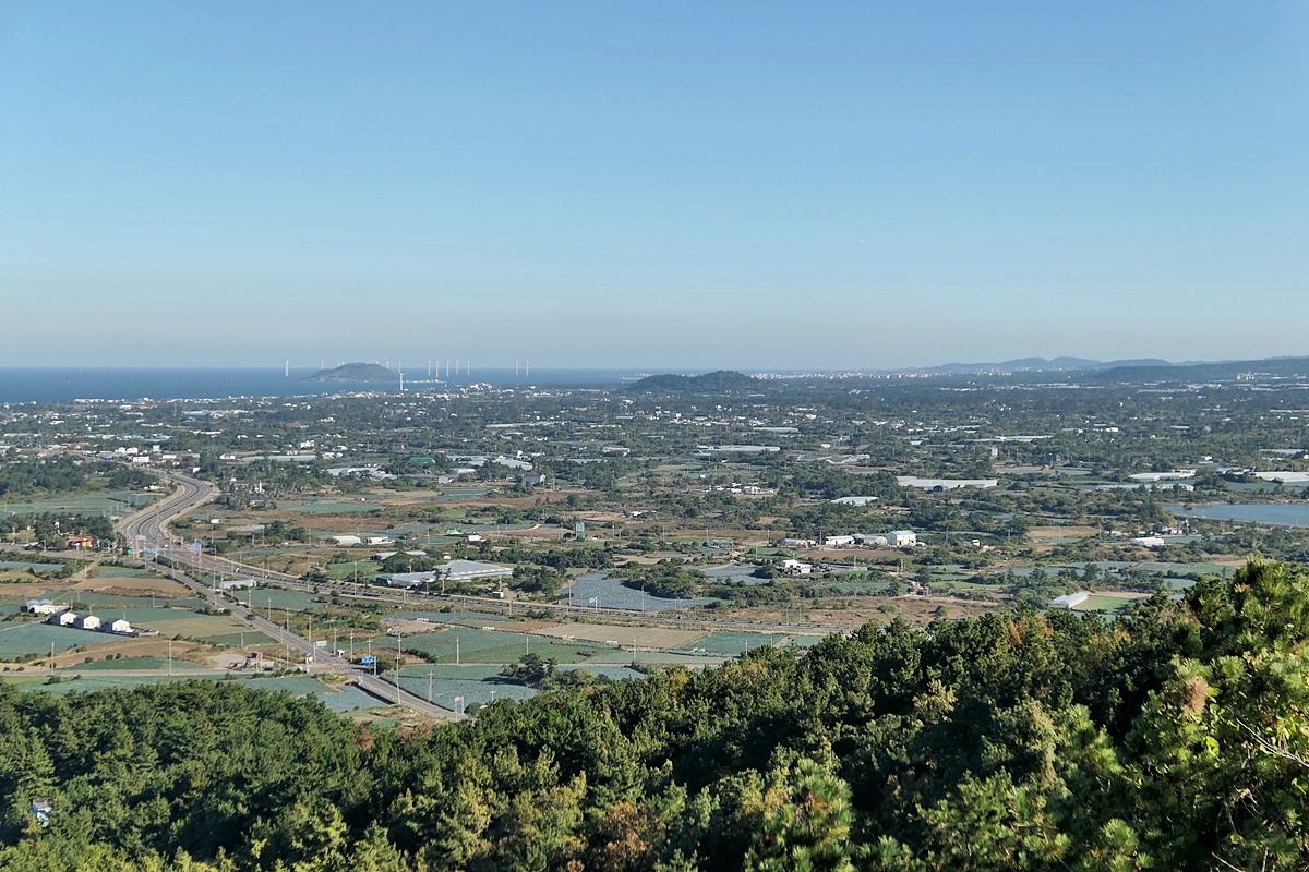 서쪽으로 바라본 한경면 고산리의 드넓은 고산평야와 바다에 접한 수월봉도 잘 보이네요.