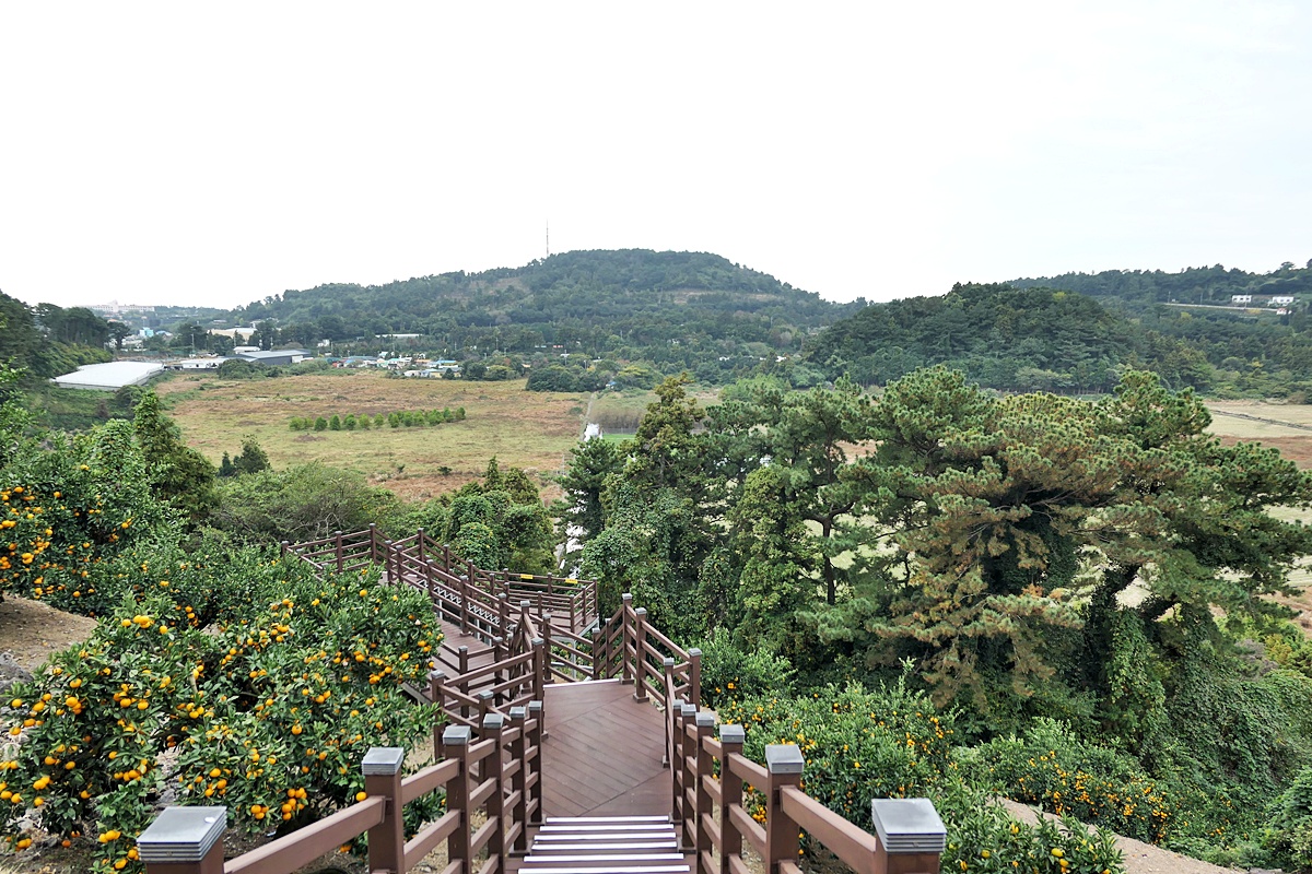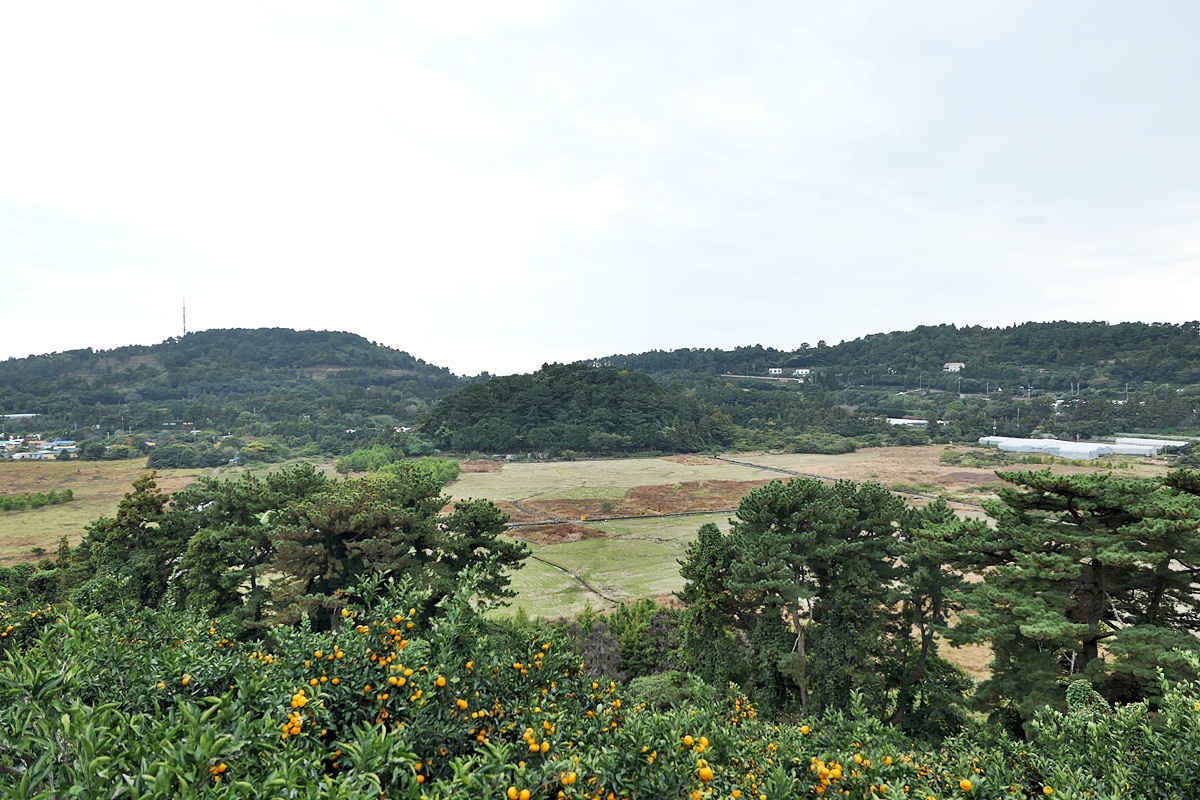 분화구 바닥은 벼농사, 경사지는 감귤농사를 짓고 있네요.