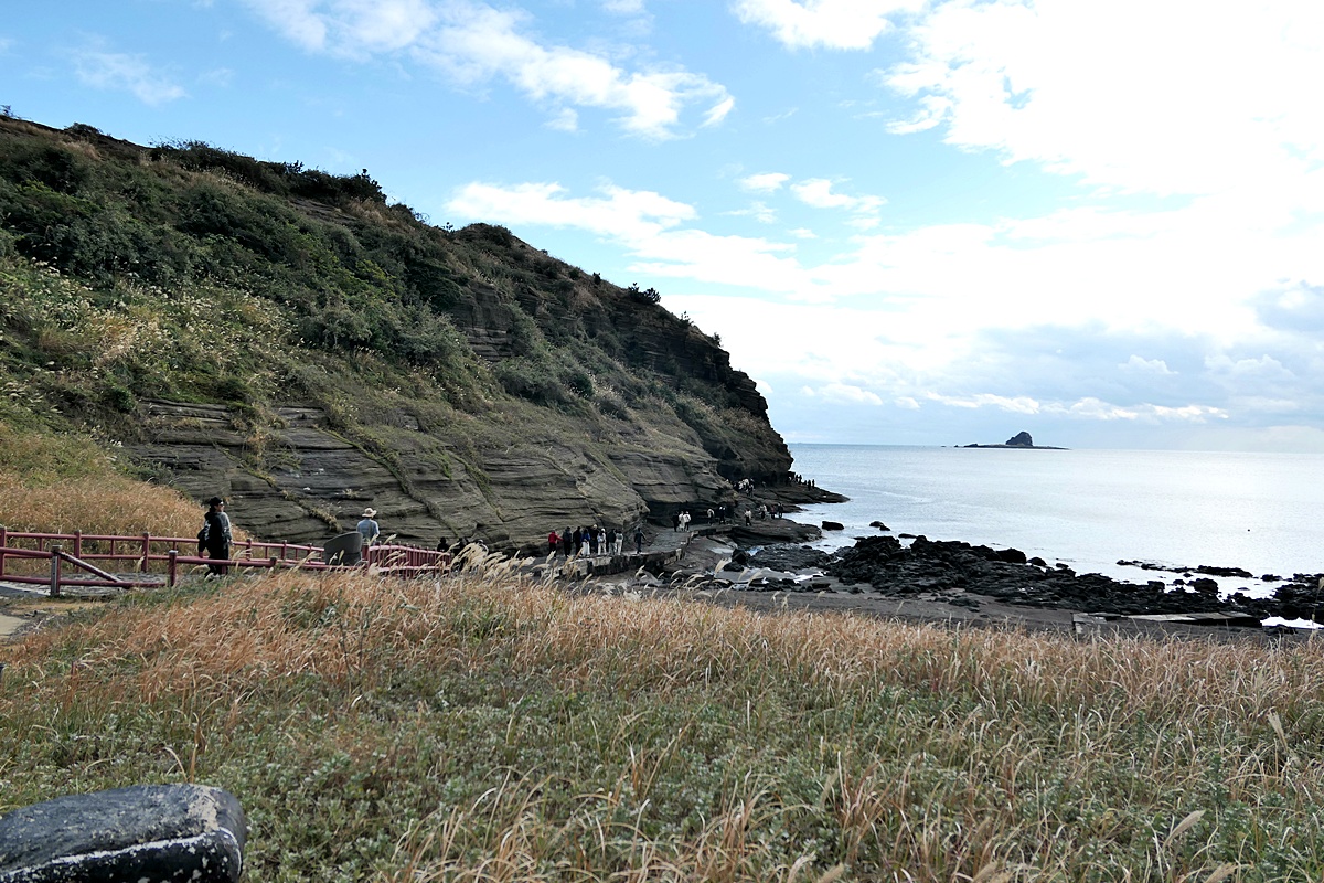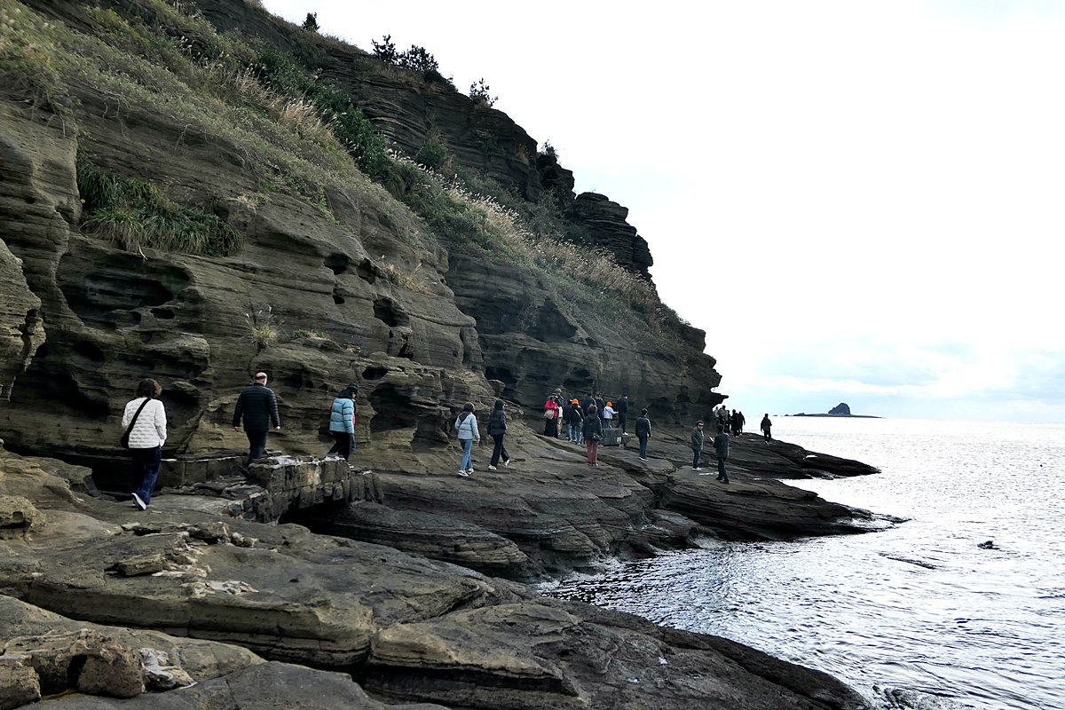 해안을 따라 걷노라면 파도에 으해 의해 침식된 갖가지 울퉁불퉁하거나 기괴한 모양의 절벽이 구비치는 파도와 함께 어우러진 절경을 감상할수 있지요.