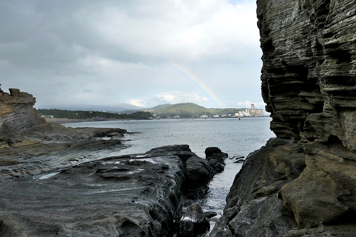 날씨가 갑자기 궂으며 비까지 내리기 시작하는 욤머리해안.