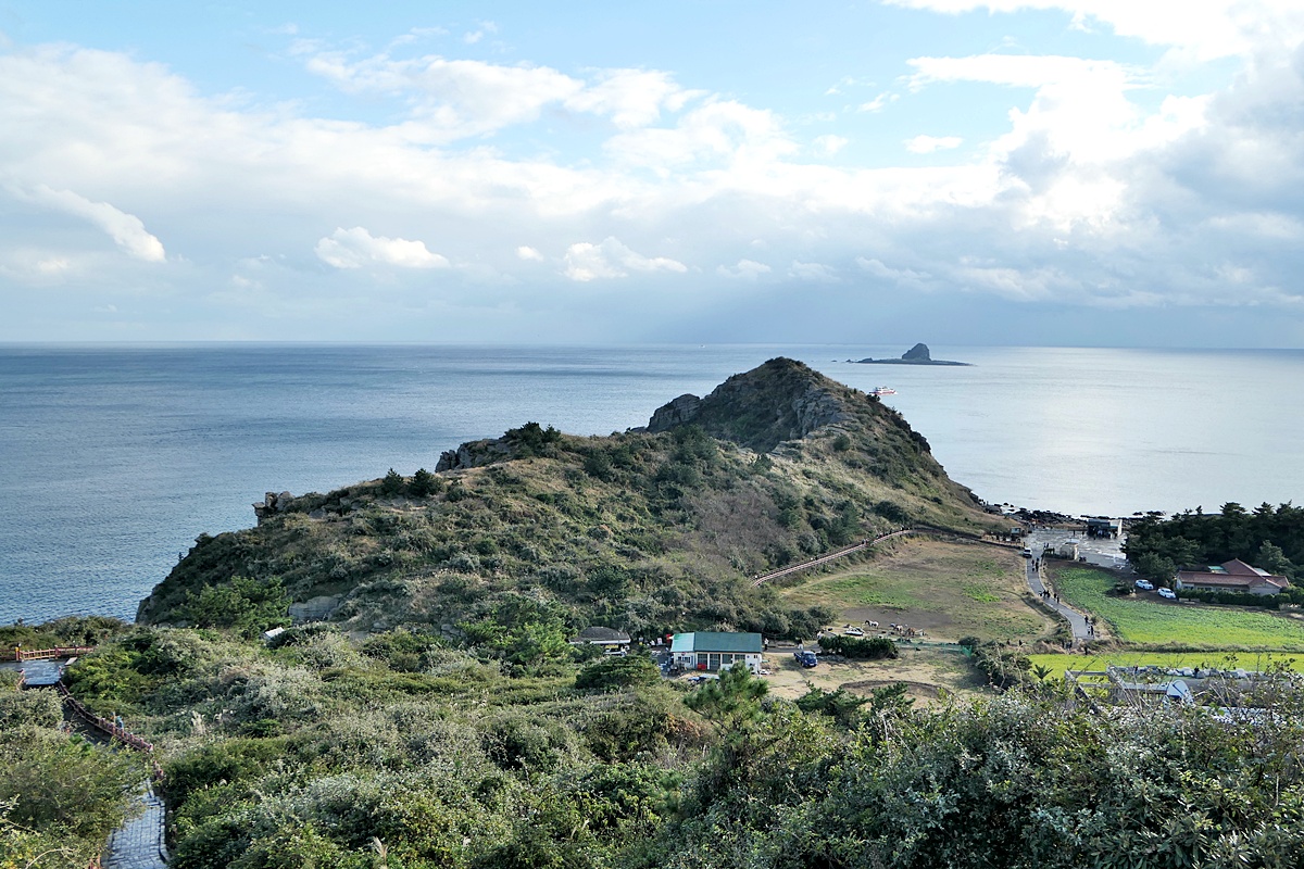건너편에 바라보이는 사계리해안과 송악산, 가파도.
